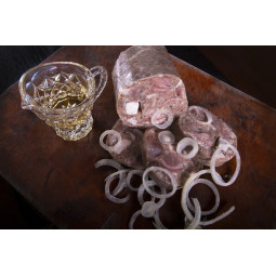 Tradiční zabijačkový produkt si můžete dopřát skoro po celý rok! Naše tlačenka je velice oblíbená a mizí rychlým tempem. Máme ji i v malé verzi vážící okolo 1,1 kg