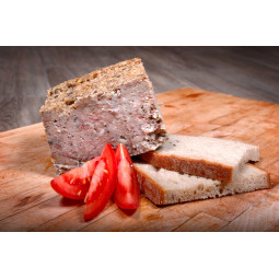 Složení: vepř.maso 67%,játra 8%,kůže 8%,sůl do 2%, žemle 10%, koření,kůže 5%, strouhanka. Alergen: lepek